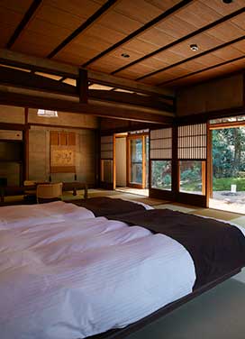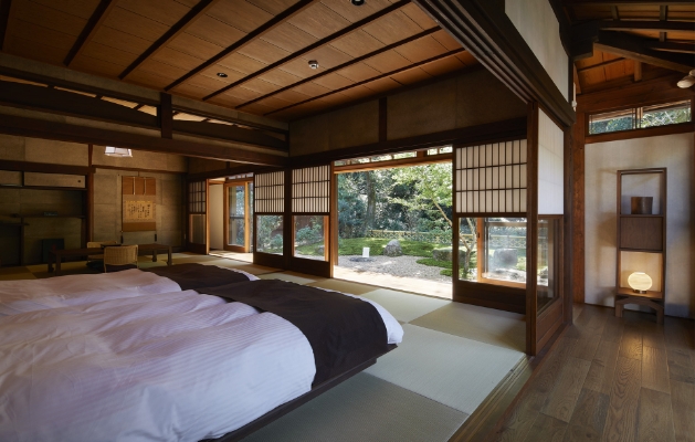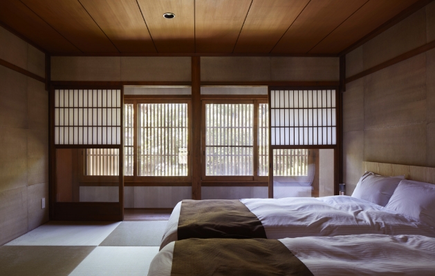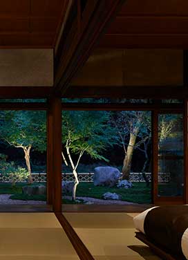 職人技が凝られた照明、伝統の小紋柄を凝りこんだベットスロープなど